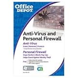 Office Depot Anti-Virus & Personal Firewall provides comprehensive protection against viruses, worms and Trojan horse programs that can potentially destroy your PC. The personal firewall also delivers business-strength hacker and privacy protection. ID theft protection helps you store sensitive personal information and daily automatic updates keep your protection up-to-date. A user-friendly interface makes it extremely easy to set your preferences, check program status and maintain a secure PC. Contains 1 Anti-Virus CD and 1 Personal Firewall CD. Read more